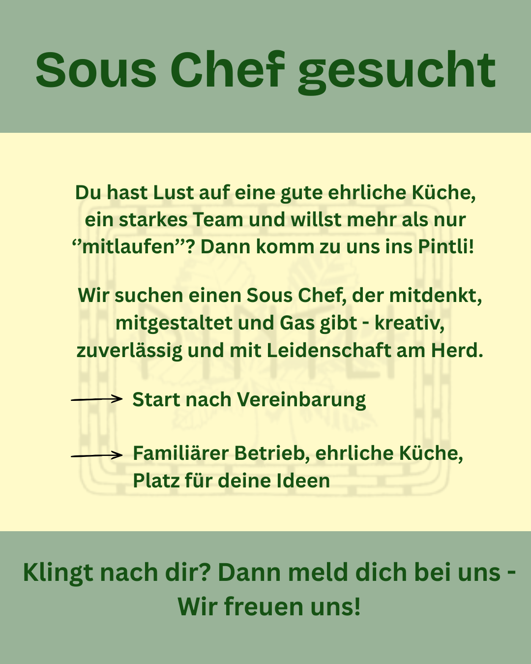 Pintli – umgangssprachlich für eine Beiz - also ein Ort, der im besten Sinne für Geselligkeit, fröhliche Stunden, Abwechslung und Ablenkung vom Alltag und nicht zuletzt für Essen und Trinken steht. Und genau das soll in unserem Pintli, welches eine Geschichte hat, die bis ins 18. Jahrhundert zurückreicht, auch im Vordergrund stehen. Eine ehrlich, authentische Küche, ein freundschaftlich familiärer Umgang mit den Gästen, dem Team und auch den Lieferanten, sowie ein gmögiger Raum in einer herrlichen Umgebung, der zum Verweilen und Geniessen einlädt. Prerfekt gelegen zwischen der Verenaschlucht und dem Schloss Waldegg und nur wenige Minuten von der Altstadt Solothurn entfernt.